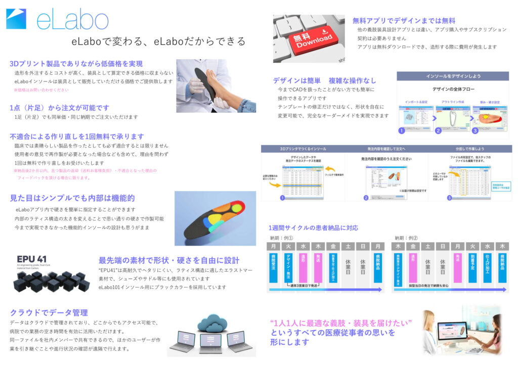 eLabo(エラボ)は3Dプリンターで造形するインソール製作クラウドサービスです。